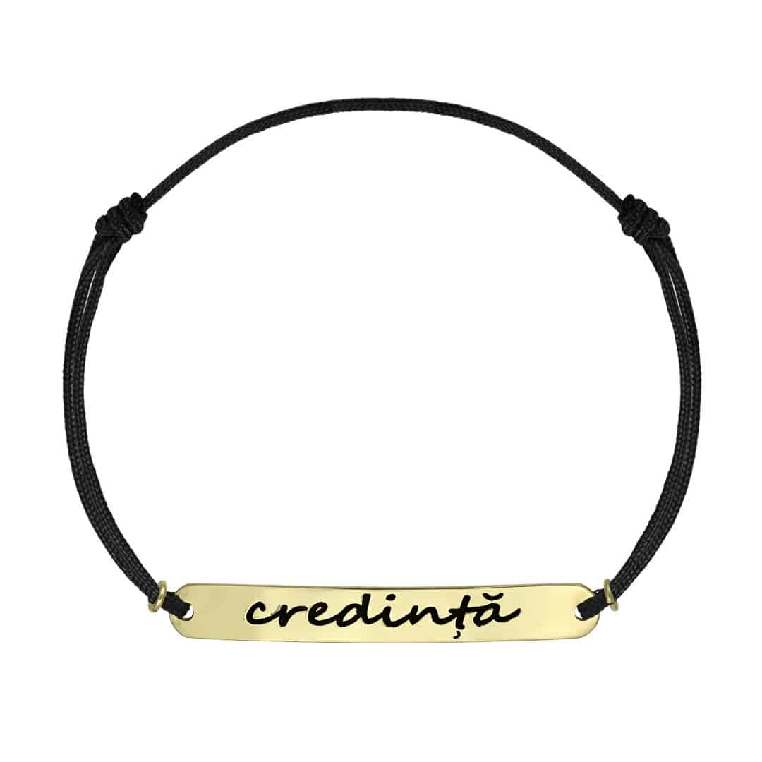 Brățară șnur aur 14 kt cu mesaj credință, șnur diverse culori