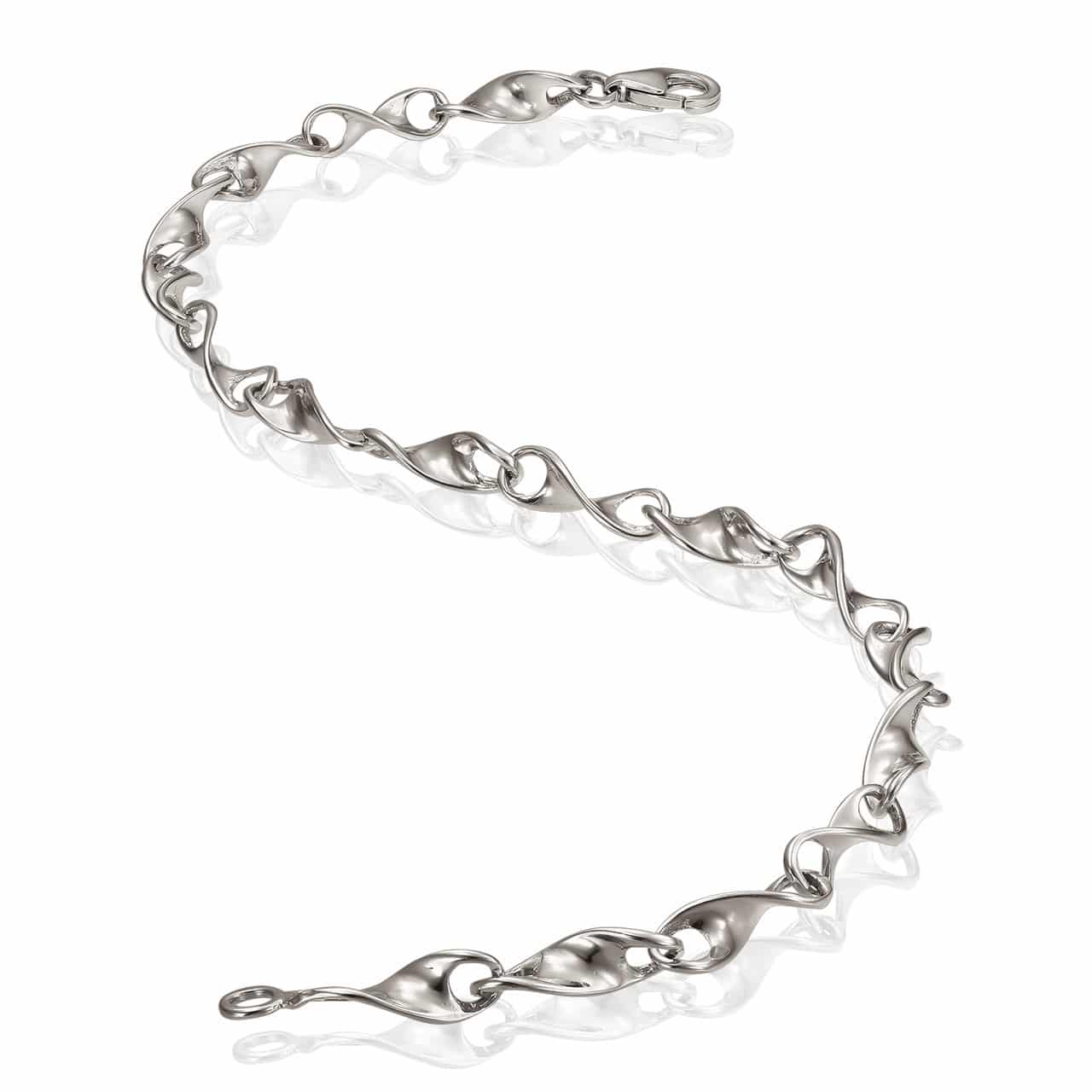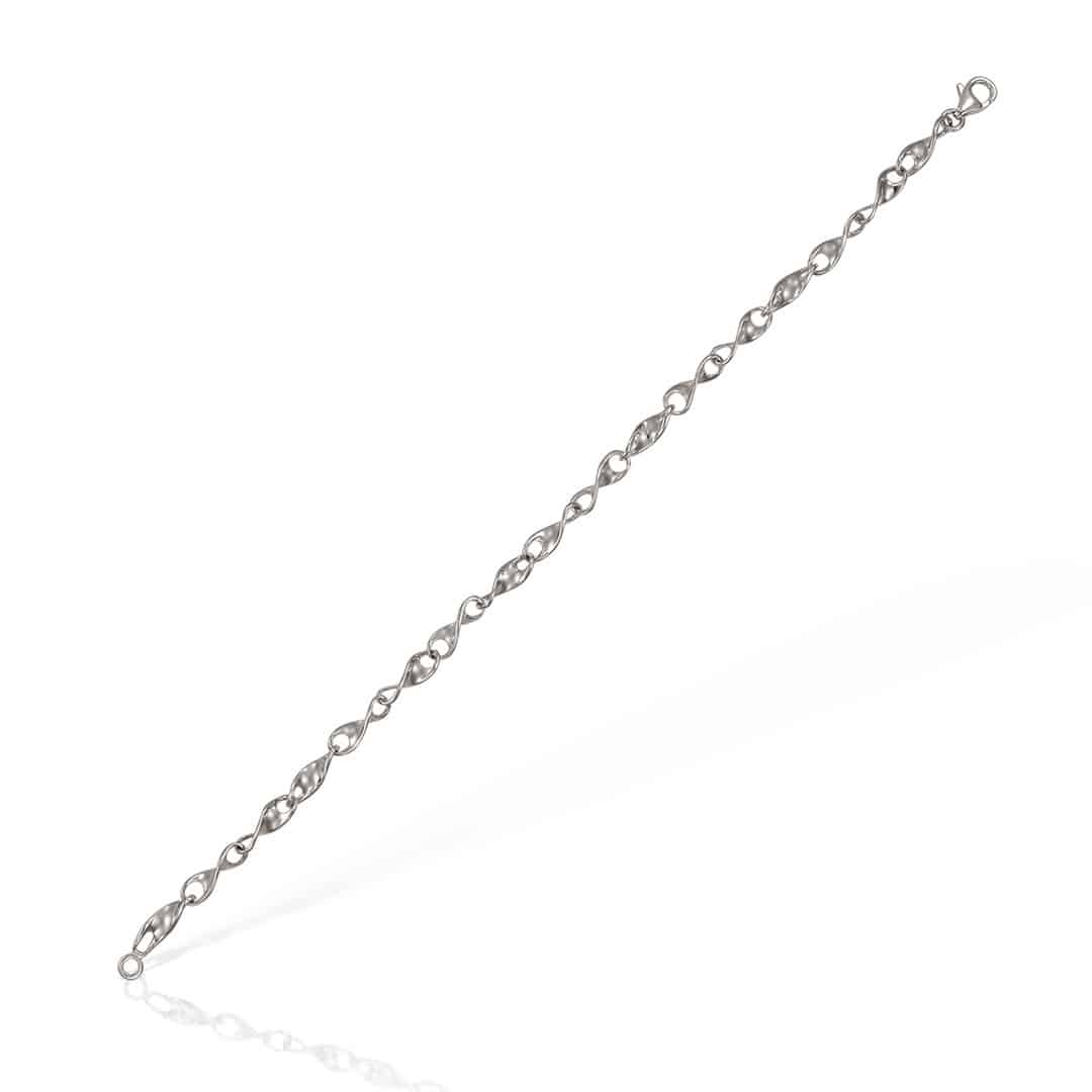 Brățara BR 02S este realizată din aur alb de 14 karate. Lungimea totală a acestei brățări de aur este de aproximativ 18 cm.