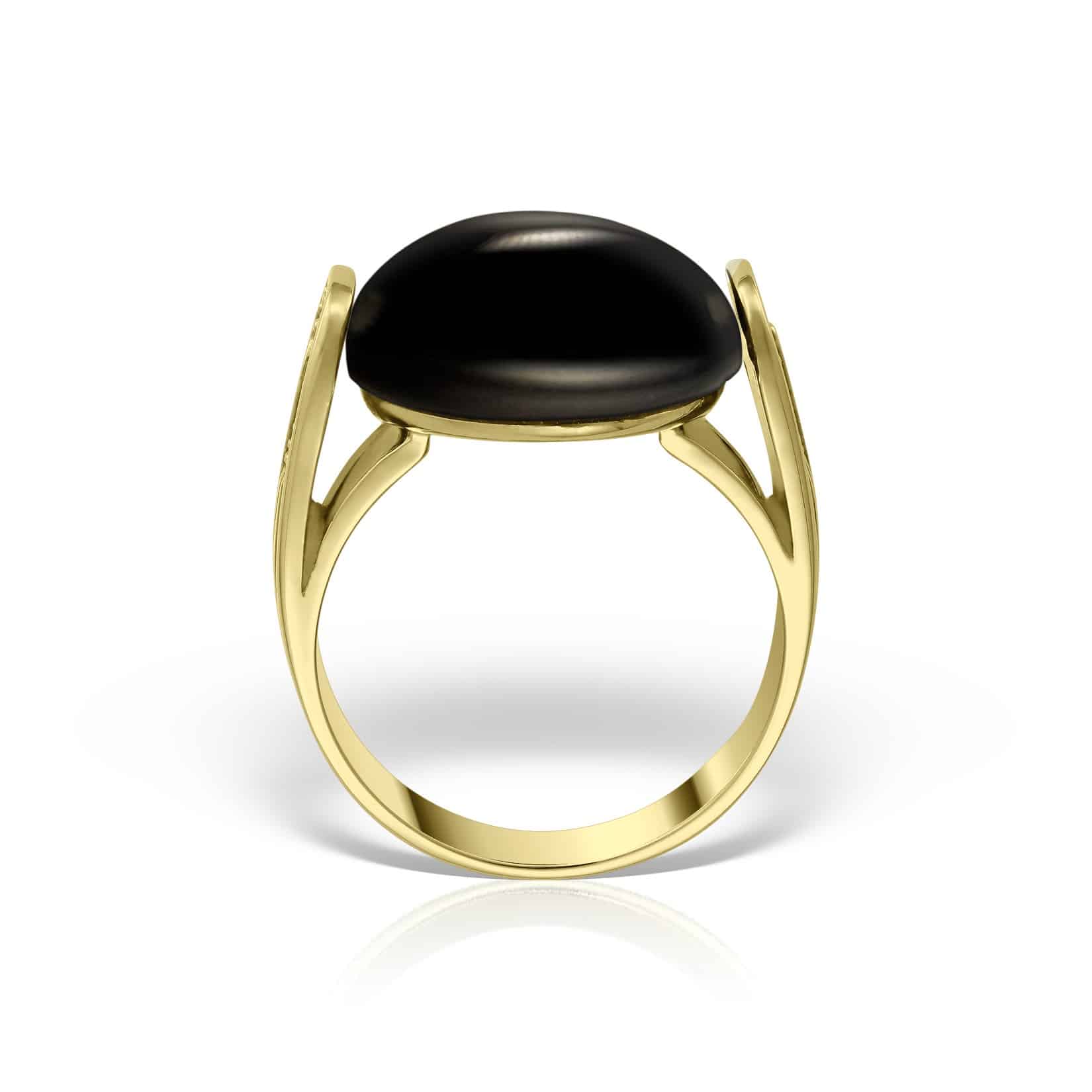 Inelul de aur 14 kt cu onix negru I 10C.3 este realizat manual, de către bijuteri români, în Atelierele Sabion din Târgu Mureș.