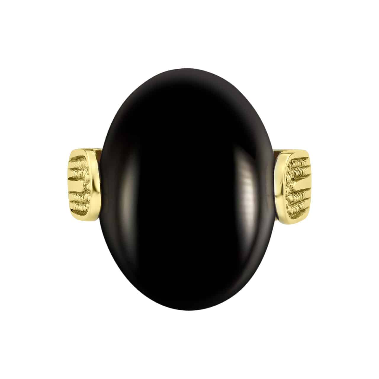 Este lucrat din aur galben de 14 karate și are montat onix negru.