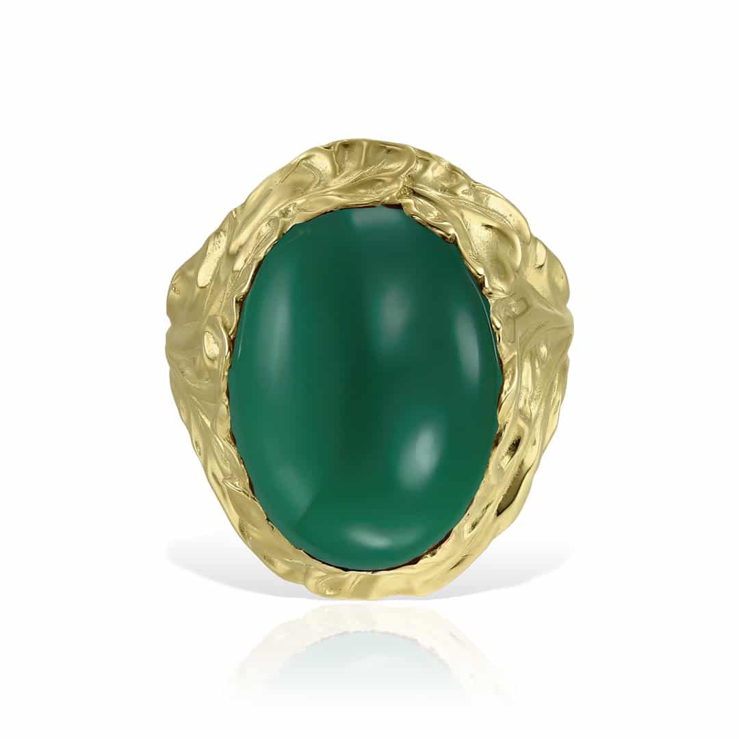 Inelul de aur 14 kt cu agat verde I S12C.4 este realizat manual, de către bijuteri români, în Atelierele Sabion din Târgu Mureș.