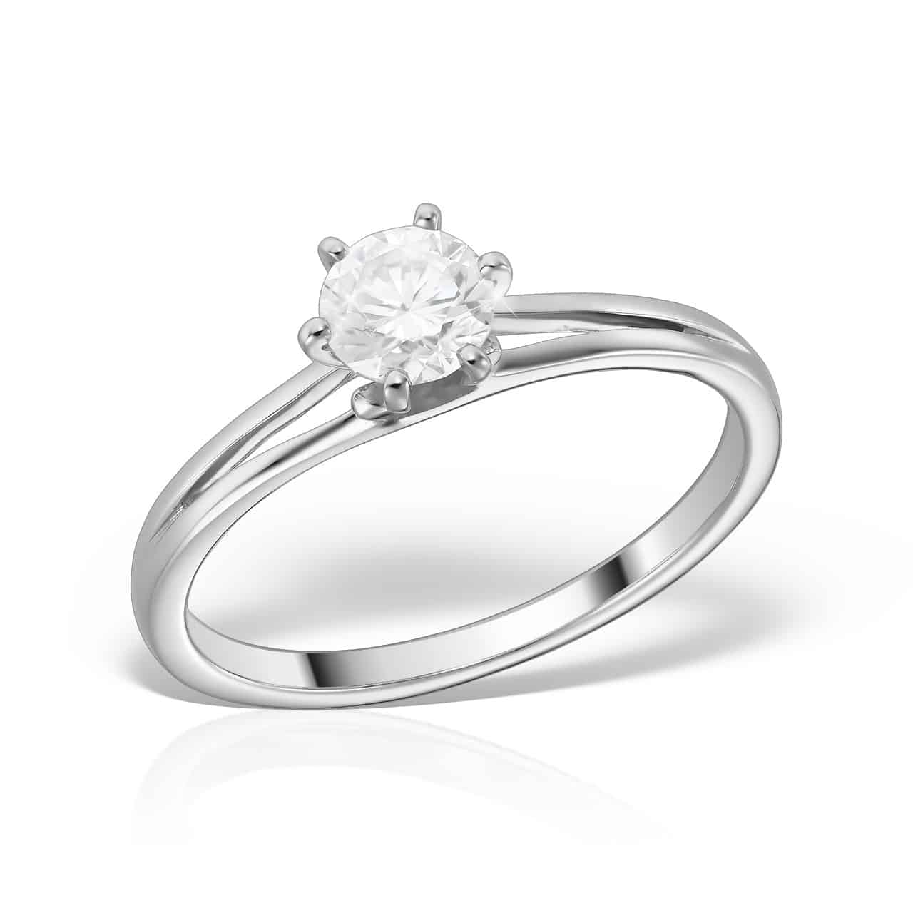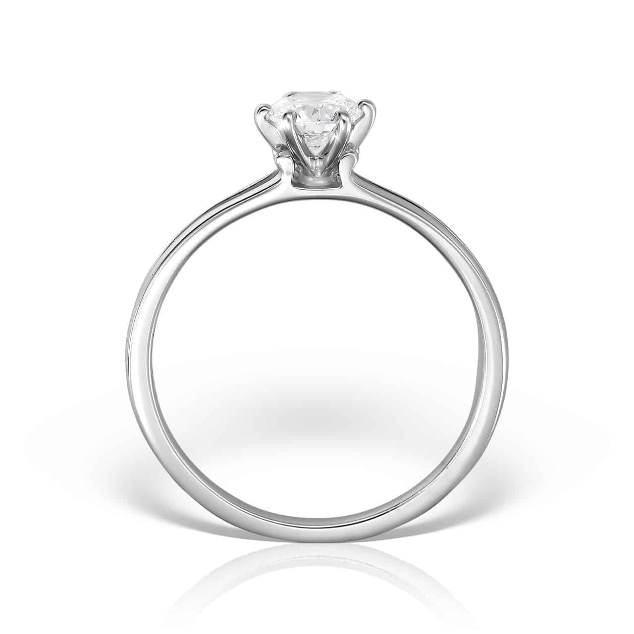 Inelul de logodnă din aur cu diamant I 116L este realizat manual, în Atelierele Sabion din Târgu Mureș. Este lucrat din aur alb de 18 karate și are montat un diamant în greutate de 0,50 ct, 0,48 ct sau 0,45 ct, la alegere, culoare-claritate GSI.