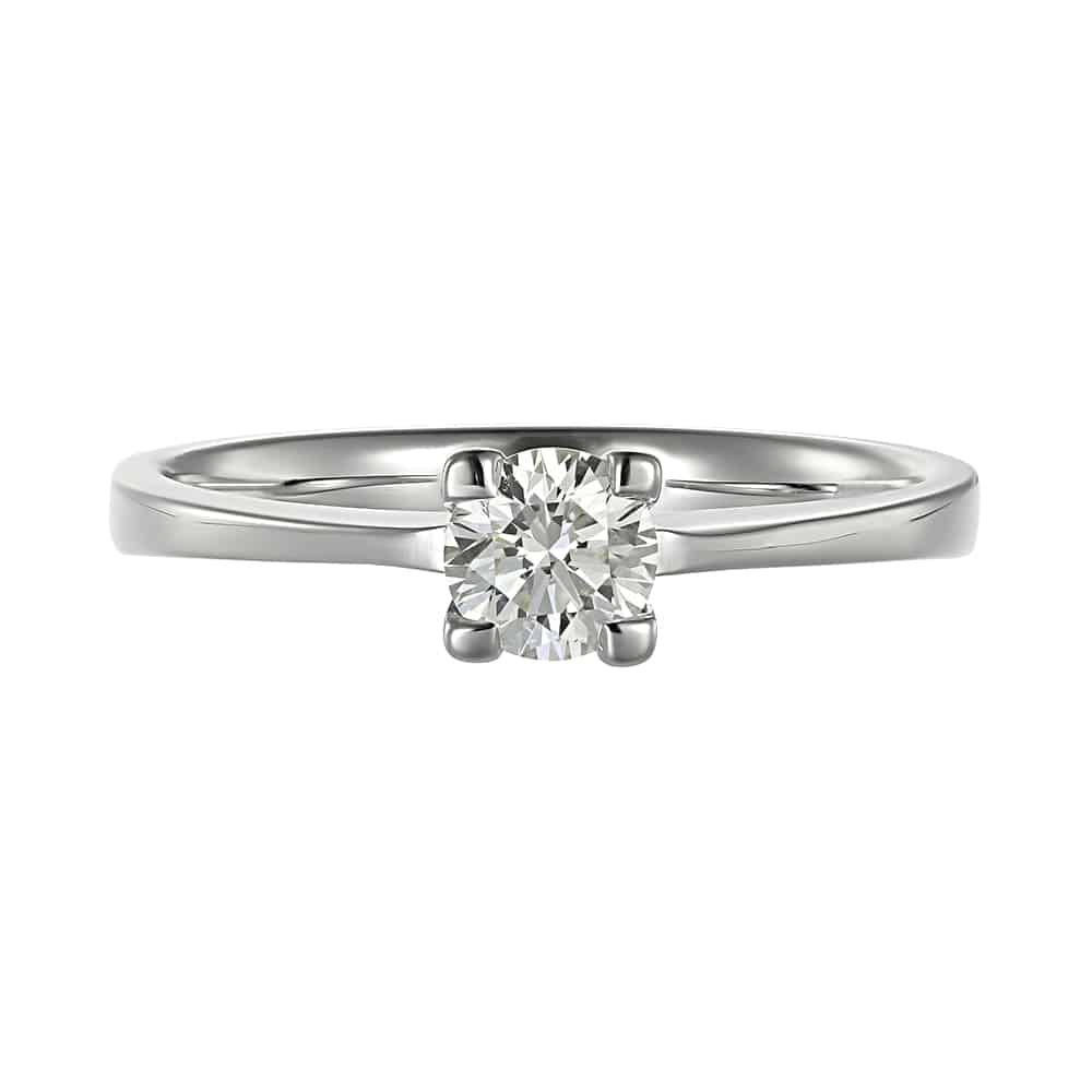 Inelul de logodnă din aur cu diamant I 119L este realizat manual, în Atelierele Sabion din Târgu Mureș. Este lucrat din aur alb de 18 karate și are montat un diamant în greutate de 0,40 ct, la alegere, culoare-claritate GSI.