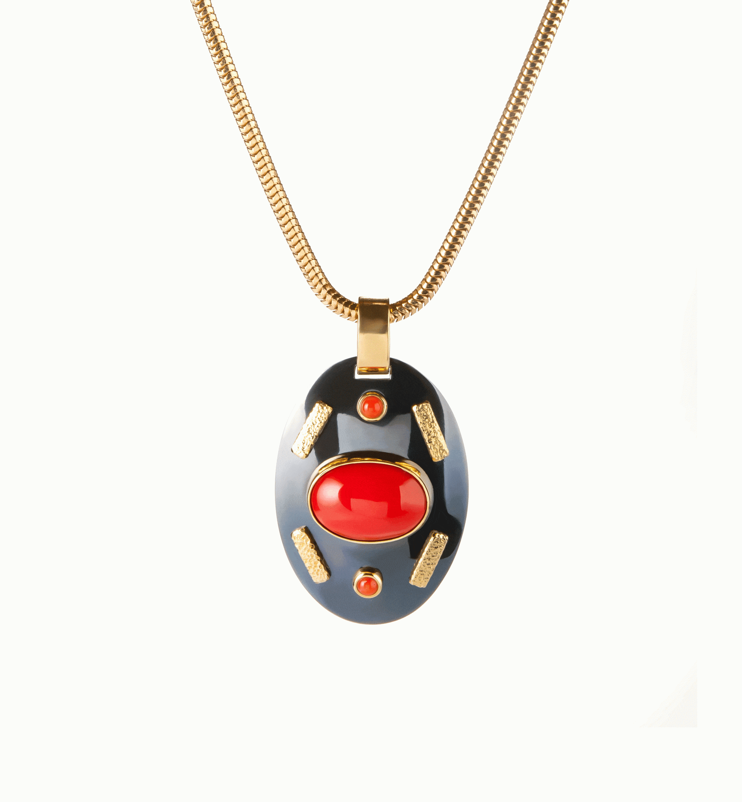 Pandantiv din aur, tantal și coral, cu simbolul Cărările Sufletului, model TAN 08, unicat